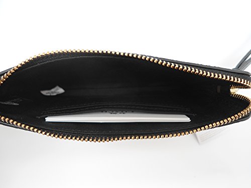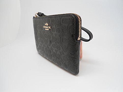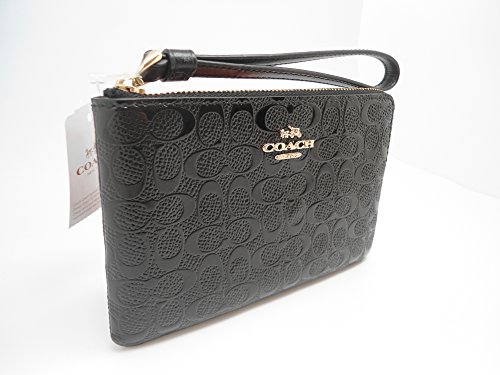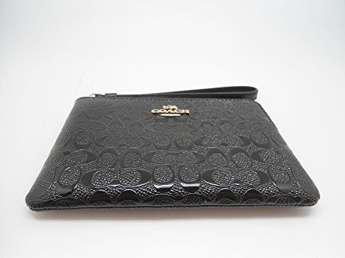 -. Title : F58034 Black Signature Debossed Patent Leather Corner Zip Wristlet