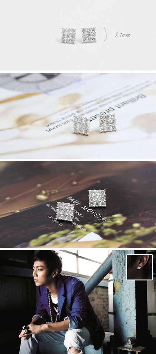 韓国スター・アクセサリー BEAST(ビースト)のドゥジュンst サーチ シルバー キュービック ピアス EARRING(2個1セット)