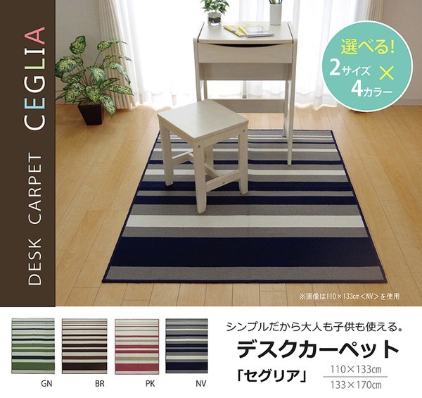 【商品名】デスクカーペット 学習机用マット 男の子 女の子 ルームマット ボーダー ストライプ 『セグリア』 ブラウン 約133×170cm