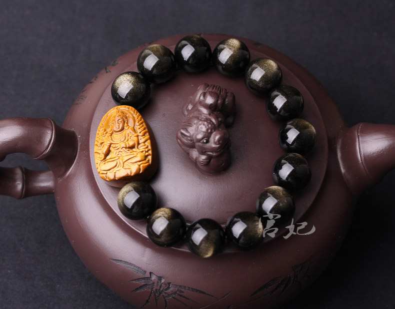 开光金曜石大势至菩萨生肖属马手链虎眼石本命佛肖马曼唯传奇手链
