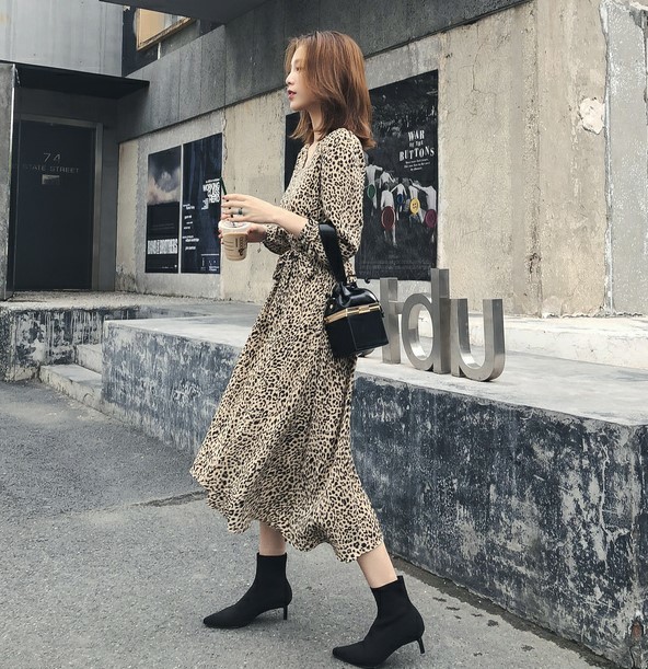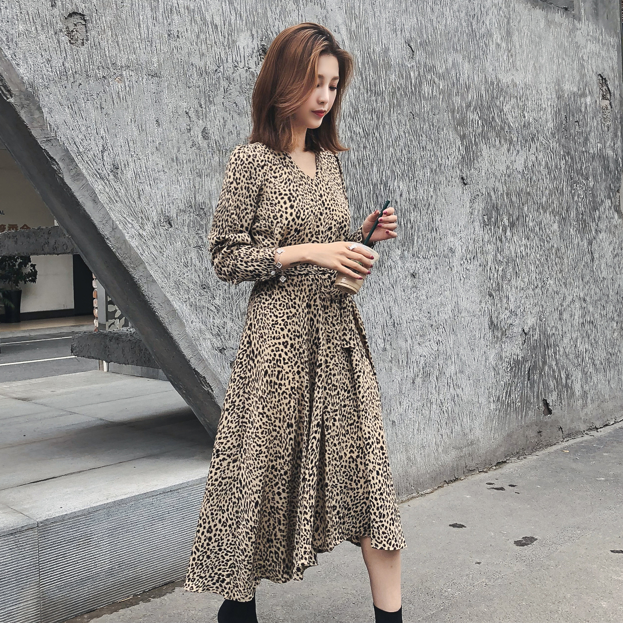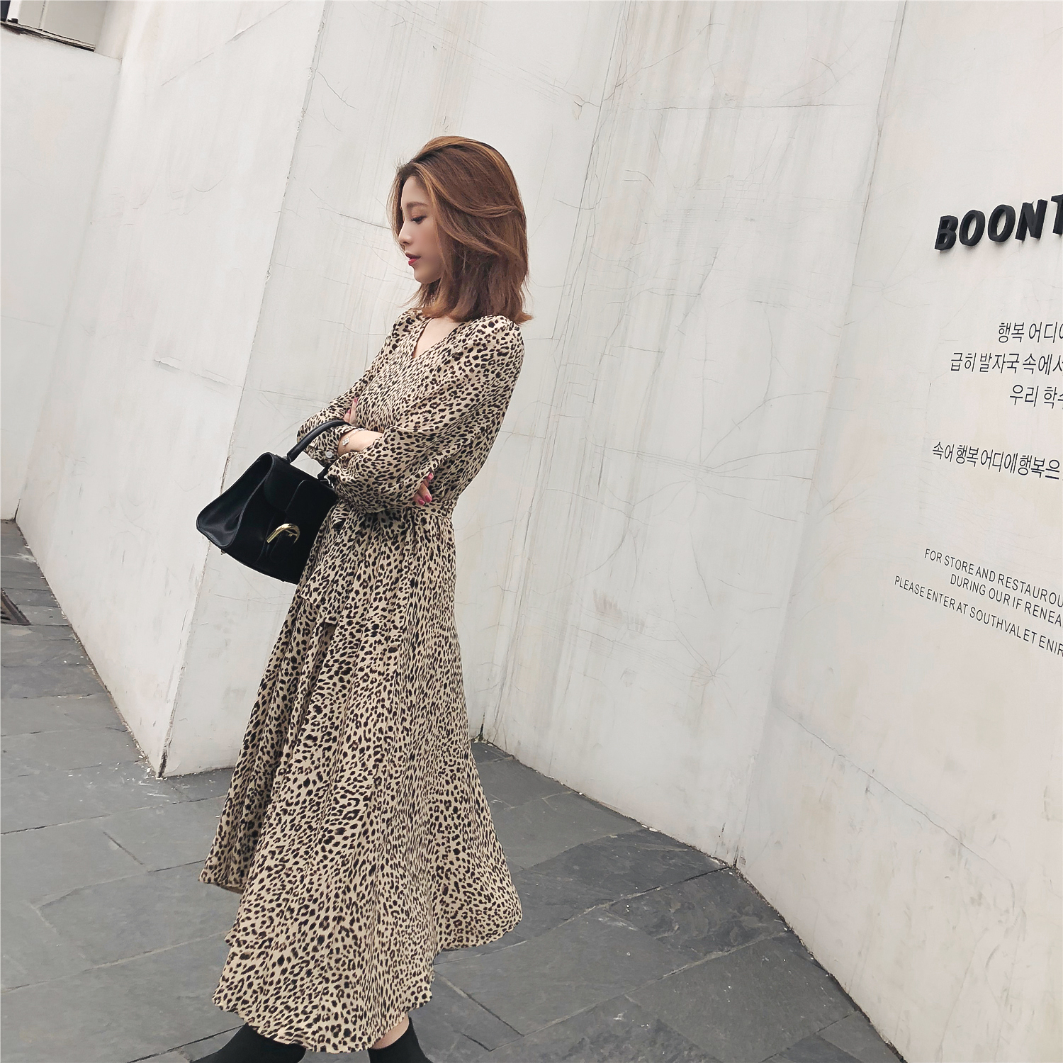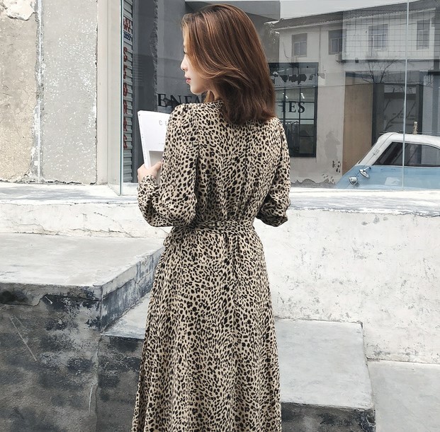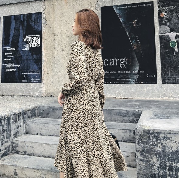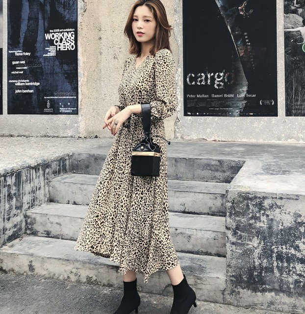 ウエストリボンで美シルエットをメイクするヒョウ柄ワンピース。