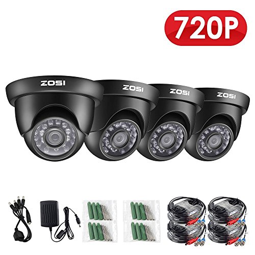 -. Title : ZOSI 4 Pack 720P 1.0MP Outdoor Indoor 3.6mm 24PCS Infrared IR Lens Day Night CCTV IR Cut Surveillance Security Camera Black Compatible for TVI DVR