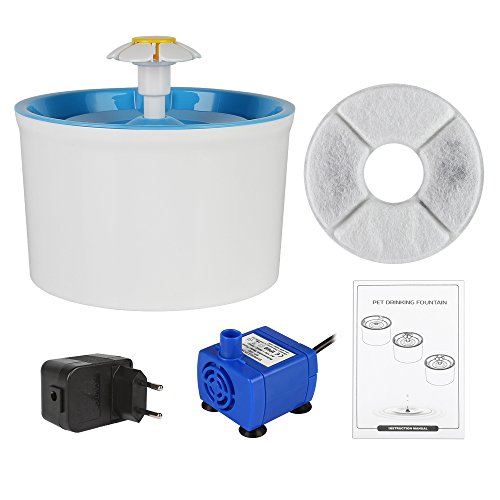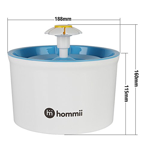 Have you ever worried about that your pets may not get enough drink when you are out? Have you ever worried about that your pets may drink water from some unclean water resources and get sick? Now Hommii Pet Drinking Water Flower Fountain can solve all the problems you're concerned!!! 1.Premium activated carbon filter *Capture all kinds of hair and debris *Remove bad tastes or odors *Keeps water clean and fresh 2.3 different water flowing ways??Gentle flow; Bubbly water; Quiet flow *Attracting your pet to drink more water,which keeps your pet healthy and strong 3.1.6L huge capacity; Super quiet *The 1.6L capacity fits several pets to drink 5-7 days.No need to worry about your pets not getting enough drink when you take a short trip! *Safe and efficient AC submersible pump with only 2w low power consumption, insures you a quiet operation. 4.High-quality BPA free material,fashinable flower design *Fascinates your pet and make an amazing decoration at your home as well. Suggestion: *Please replace the filters and clean the fountain regularly. *The yellow cap on the top can be screwed off with your finger. Features: Material: Plastic PP Item: Pet Fountain Type: Water Fountain Design: Automatic Electric Feature: Flower Style Water Capacity:1.6 liters (54 oz) Whole Size: approx. 7.48 x 7.48 x 6.3 inches (19cm x 19cm x 16cm) Input Voltage: AC 220V/ 50Hz ,AC120V/60HZ Output Voltage: AC 12V Power Consumption: 2W Pump: AC Pump Cable Length: 1.8M (pump) Quantity: 1pcs Suit for: Small/Middle size Dog or Cat Package Content: 1 x Pet Water Fountain 1 x AC Adapter 1 x Charcoal Filter 1 x Instruction Manual 1 x Silicone Drinking Mat(Selected) 0 |