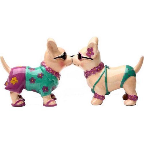 Chihuahua Beach Style 3 1/2'' tall Magnetic Salt and Pepper Shakers