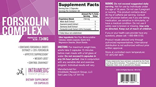 -. Binding : Health and Beauty -. Brand : Basic Research -. EAN : 0681168750046 -. Feature : Appetite Suppression / Weight loss / May help to control cravings -. IsAdultProduct : 0 -. Label : Basic Research -. LegalDisclaimer : WARNING: Do not exceed sested daily seerving. Not for use by individuals under the age of 18 years. Do not use if pregnant or nursing. This product contains about 30mg of caffeine per serving. Consult your physician before use if you are taking medication, are sensitive to stimulants, or have a medical condition. Do not use if safety seal is broken or missing. Use only as directed. Keep out of reach of children. -. Manufacturer : Basic Research -. MPN : 245944 -. NumberOfItems : 1 -. PackageQuantity : 1 -. PartNumber : 245944 -. ProductGroup : Health and Beauty -. ProductTypeName : HEALTH_PERSONAL_CARE -. PublicationDate : 2016-09-16 -. Publisher : Basic Research -. ReleaseDate : 2016-09-16 -. Size : 60 servings -. Studio : Basic Research -. Title : Basic Research ITM Forskolin Complex, 120 Count -. UPC : 681168750046