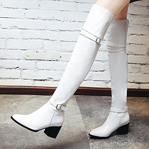 Binding : Apparel Product Description The pair of right shoes can make all the difference. The boots season comes. A pair of long boots is a must-have for a lady who want to be impressed in the crowed. If you're trying to get boots that will send a message with your every step, there's no finer footwear to add glamour close to you than these tall boots from Mofri. These boots don't whisper; they scream with their distinctive and trendy design. This pair of boots make you stand out in any crowd and are sure to heat things up no matter what you wear with them. The block heels raise your height and giving the shoes a chunky shape that is reflection of the latest trends. These shoes from Mofri is made from top quality vegan synthetic leather. Leave those boring basic boots behind. Make this pair boots as your fashion secret weapon and you'll be able to have some sexy appeal which will be the soul of your everyday ensembles. Order a pair in your favorite color! Can't decide? Why not get more? You'll still pay less than the price you would for a single designer pair elsewhere. We will make you always be on the cutting edge of women' s fashion. Mofri is a legal trademark which has registered in United Stated Patent Trademark Office. All right reserved. 0
