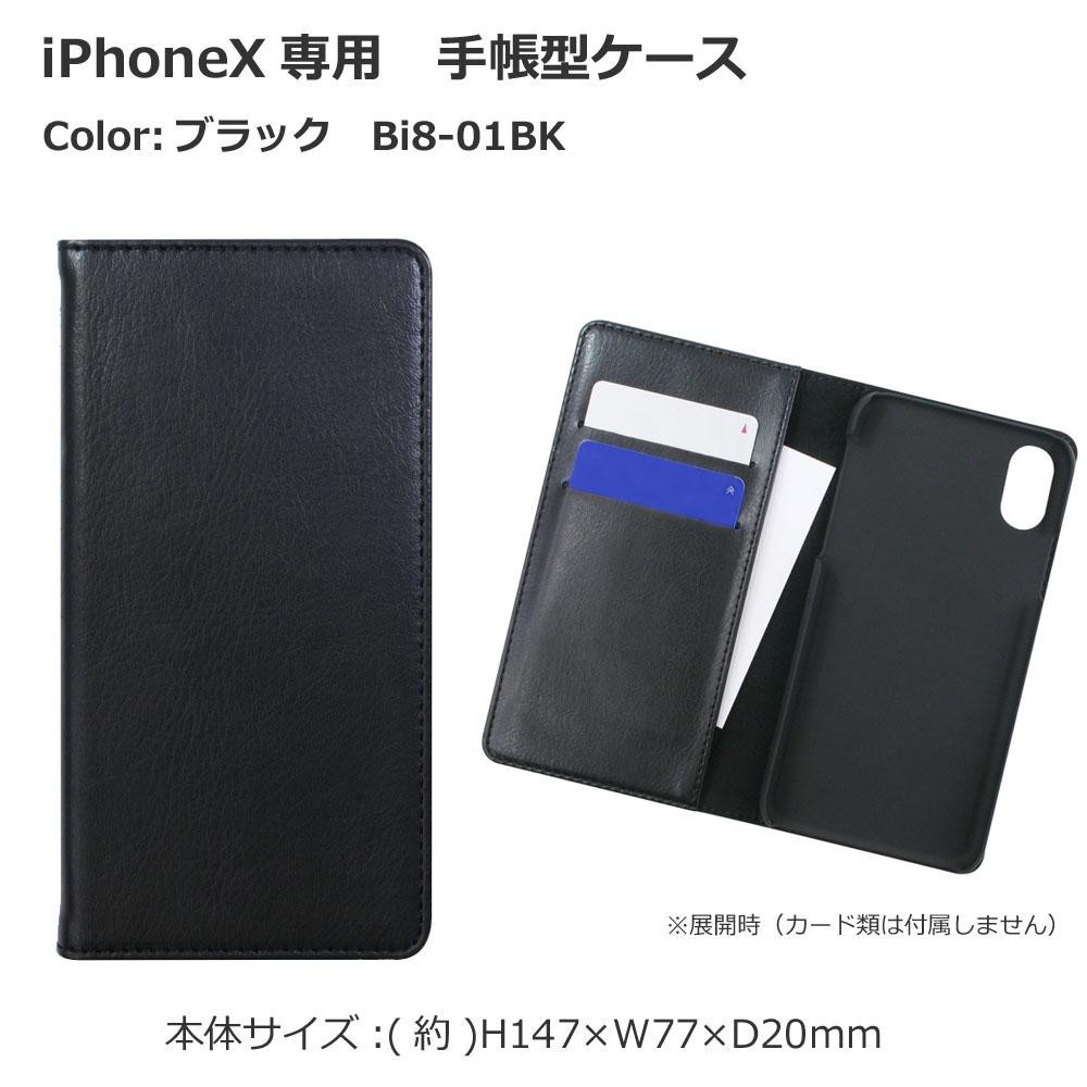 カバーにマグネットを内蔵したことで、スリム感を実現したiPhoneX専用手帳型ケースです。 製造国:中国 素材・材質:ハードケース/PC(ポリカーボネート)生地/PUレザー 商品サイズ:約H147×W77×D20mm 重量:約81g 仕様:対応機種:iPhone X ※サプライヤー直送品 ご注文後3~4営業日後の出荷となります【商品名】iPhoneX専用 手帳型ケース ブラック Bi8-01BK
