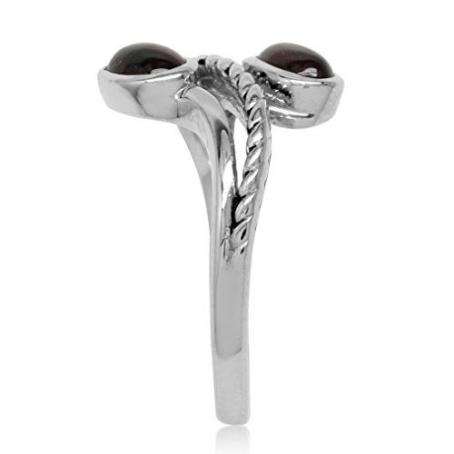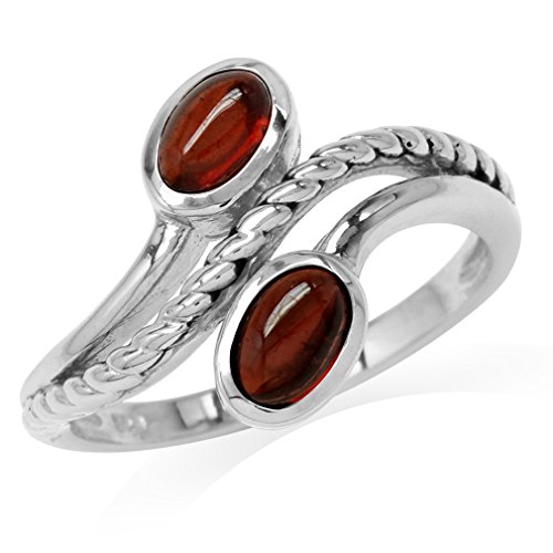 -. Title : Cabochon Garnet White Gold Plated 925 Sterling Silver Rope Bypass Ring