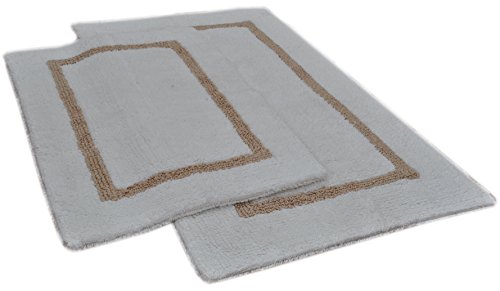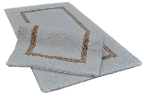 2 piece Reversible White and Beige bathroom rugs set 21 x 34 / 17 x 24 Inches