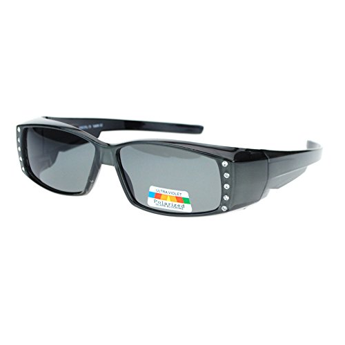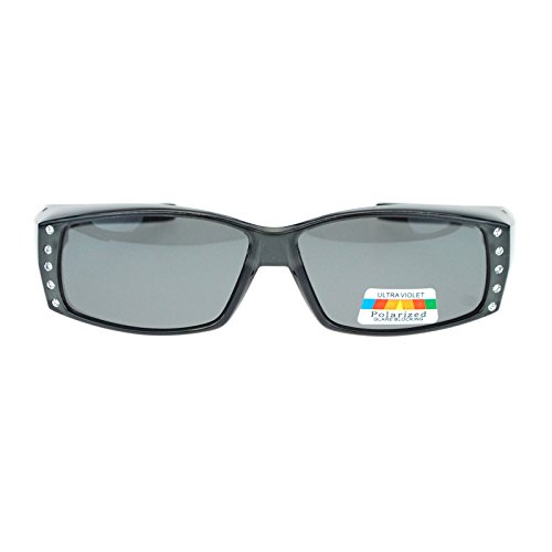 Womens Rhinestone Jewel Polarized Lens 60mm Fit Over Rectangular Sunglasses