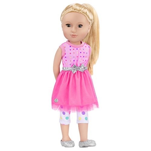 Glitter Girls are very unique collectable dolls. Every doll comes with a glittery bow and shoes. This size doll is great for your older daughter who loves fashion and of course glitter! Not only does Glitter Girl have dolls but they also have adorable outfits too. Each outfit comes with very detailed prints and a pair of glitter shoes. The Stay Sparkly outfit is so fun you won’t resist getting it. It’s really the perfect outfit for any occasion, school, a party, or going to grandma’s house! There are many benefits to playing with dolls. Glitter girl dolls let your child express themselves through many different ways, being it personality wise or freedom of speech your child will love how all the glitter girl dolls are so positive, loving and fashionable too!Feature