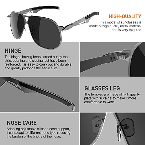 POLARIZED LENS♥ Polarized sunglasses reduce glare reflected off of roads, bodies of water, snow, and other horizontal surfaces. Restore true color, eliminate reflected light and scattered light and protect eyes perfectly. Polarized sunglasses cut glare and haze so your eyes are more comfortable and you can see better.