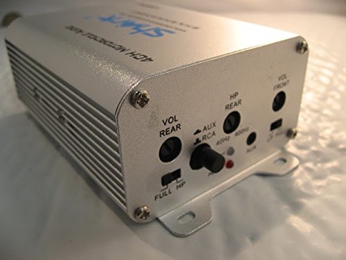 4 channel 1000 watt shark motorcycle audio system with bluetooth. Handle Bar Brackets are included. Speakers are totally waterproof (amp is not). There is no remote on this system. You will control it with you audio source (android, ipod, mp3 player etc). Control High/end Pass. To connect Black color wires with RCA to connect 4pcs speakers. the orange wire to connect with key switch . Red wire to connect battery + and another black color wire connect to battery -Feature