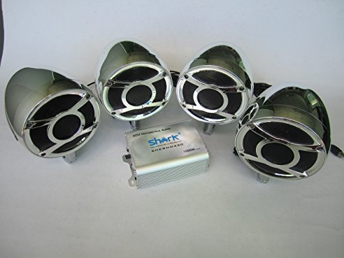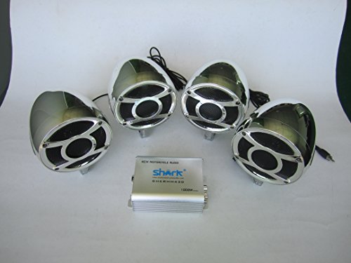 4 channel 1000 watt motorcycle audio system with bluetooth. Includes amplifier, 4 speakers and handlebar brackets