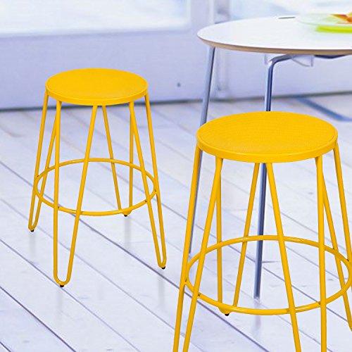 -. Feature : Material: metal(steel) / Seat Height:26"; Seat Diameter:13.8" / Total Dimension: 18.3*18.3*26 inches (length x width x Height) / Glossy Finish, stackable for easy storage and space Saving / No assembly required