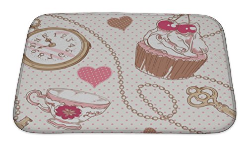 Gear New No Slip Microfiber Memory Foam Romantic Love Vintage Pattern Bath Rug Mat, 24" X 17"