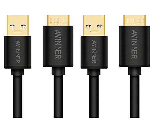 -. Feature : AWINNER® Micro USB 3.0 cable connects a portable external USB 3.0 hard drive to a computer for speedy file transfer or synchs and charges Samsung smartphones or tablets equipped with the USB 3.0 Micro-B port / SuperSpeed USB 3.0 data transfer rate at up to 5 Gbps, 10x faster than USB 2.0.HD movies can be transferred in just seconds / The combination of gold-plated connectors, bare copper conductors, and foil & braid shielding provides superior cable performance, error-free data transmission, and fast charging speed / Premium Micro USB 3.0 cord engineered with molded strain relief connectors for durability and grip treads for easy pling and unpling / Super Speed USB 3.0 A to Micro B Cable is Compatible with Samsung Galaxy S5, Galaxy Note 3, Galaxy Note Pro 12.2, and portable USB 3.0 external hard drives including Toshiba Canvio, Seagate FreeAgent, and Western Digital (WD) My Passport and Elements hard drives