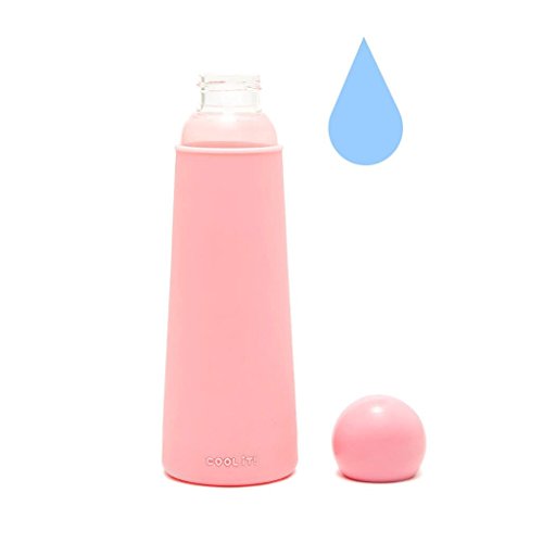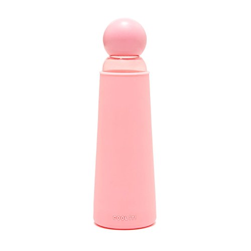 this water bottle is chiiiic. the tubular and tapered shape plus ball lid reminds us of the cutest shampoo bottle! the silicone sleeve helps keep that drink extra cool, and it even has built in padding on the bottom to break a fall. anyone else have visions of learning to rollerblade right about now?Feature