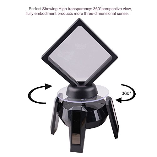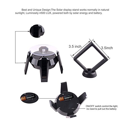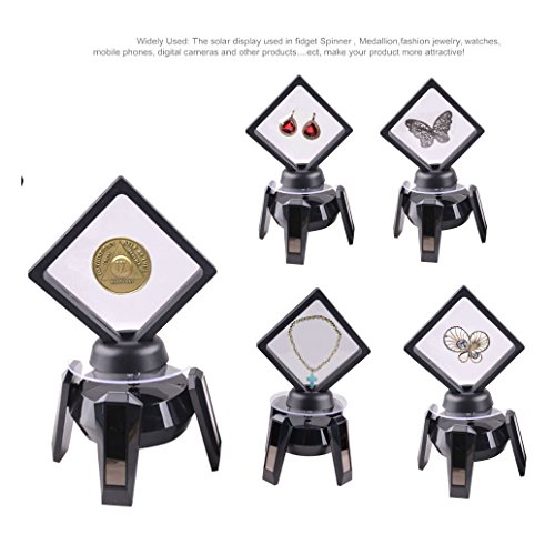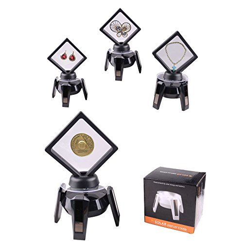 Matchless Store Rotating Coin Display Stand - 360° LED Solar Powered Stand for Jewelry Toys (Black)