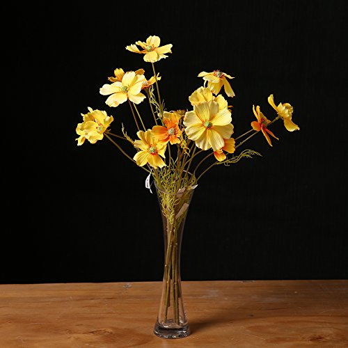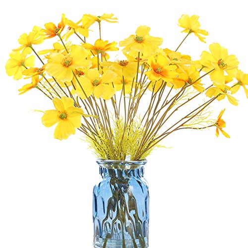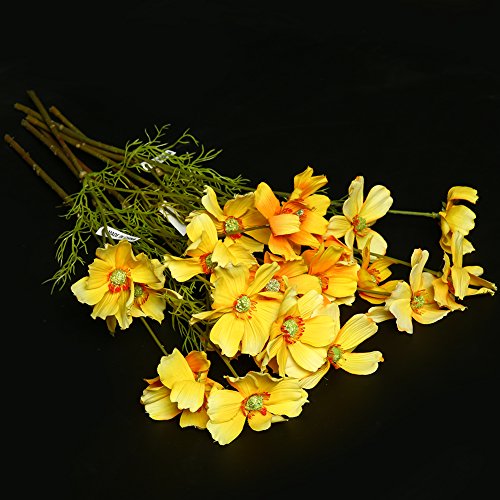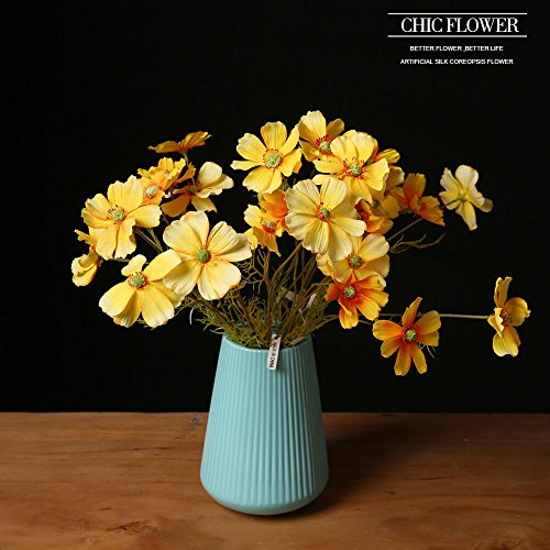 JUSTOYOU 3 Heads Artificial Silk Chrysanthemum Coreopsis Flower For Home Wedding Décor,Pack of 10pcs ,NO Vase(Yellow)