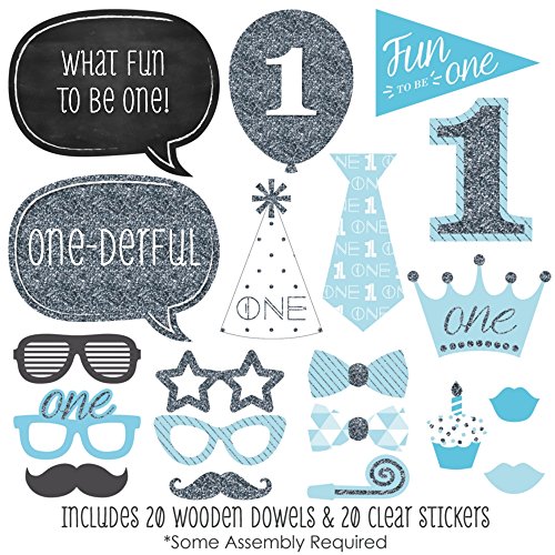 20-Piece Birthday Party Photo Booth Props Kit INCLUDES 20 Fun to be One photo booth props, 20 wooden dowel sticks and adhesives for assembly. EASY ASSEMBLY: Simply attach the printed DIY photo booth props to the wooden dowels with included adhesive and reinforcing stickers.