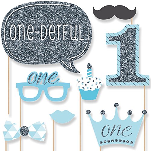 HIGH-QUALITY PARTY SUPPLIES: Fun to be One photo booth props are professionally printed on thick cardstock paper. They will arrive cut out and ready to assemble with the included wooden dowel sticks and adhesives. 1st Birthday Boy - Fun to be One photo booth props use a No-Mess Glitter Print: Our photo booth props are designed with a printed image of glitter, eliminating glitter flake while maximizing bling effect!