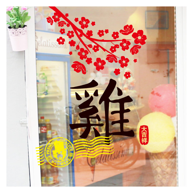中国新年喜庆窗花元旦鸡年春节墙贴橱窗玻璃门贴纸装饰布置用品