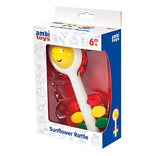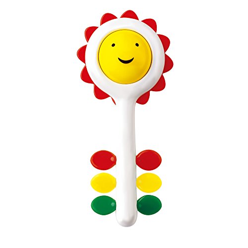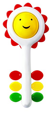 A cheery sunflower rattle to spin, shake, touch and turn. This 2-in-1 rattle can also be used as a tether.