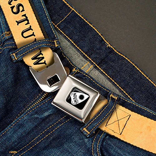 Studio : Buckle-Down - Parent Vendor Code Publisher : Buckle-Down - Parent Vendor Code Binding : Apparel Product Description Buckle-Down's iconic Seatbelt Belt is a cool, smart, and exciting blend of fashion and function. Always a conversation starter, our Seatbelt Belt adjusts to perfectly fit your waist while showcasing your unique sense of style. Our Seatbelt Belts are made with authentic automotive style seatbelt buckles making them easy to open and close at the push of a button. Our Seatbelt belts are 1.5 inch wide and are infinitely adjustable for pants sizes 32 to 52. This product is Handcrafted in USA by Buckle-Down Inc. and Officially Licensed by Ouija Board. 0