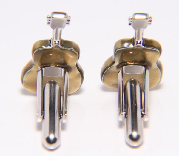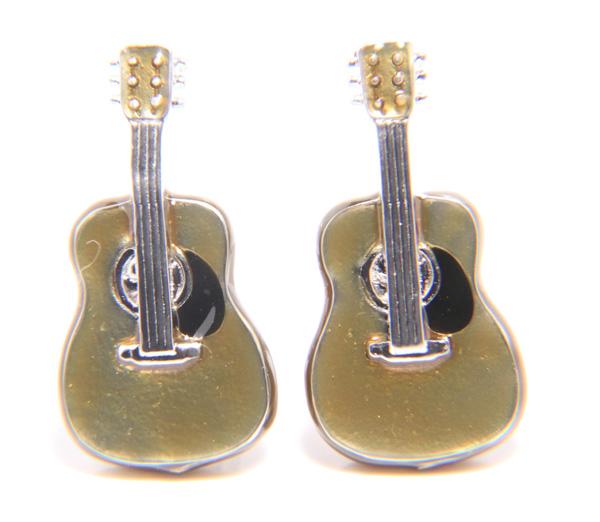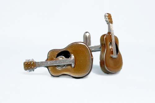 ギターのカフスは、柔らかな色のギターです。音楽が好きな方へのプレゼントとしてもオススメです!年齢を問わず人気の品です。