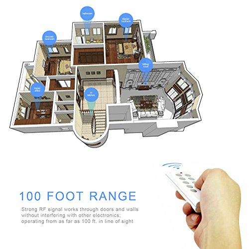 Works through walls, doors or line of sight with 100ft. operating range; Perfect for lamps, fans, Christmas lights, etc.