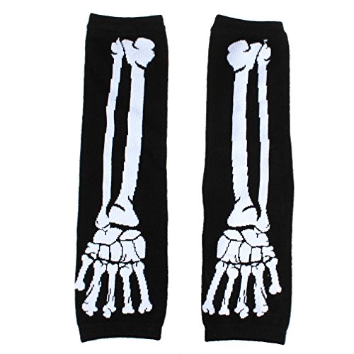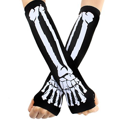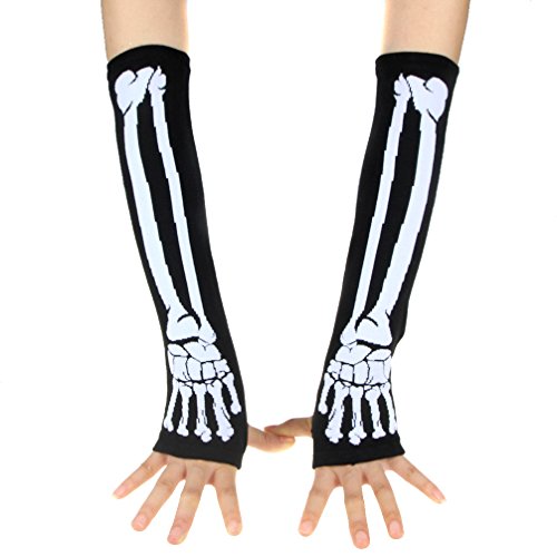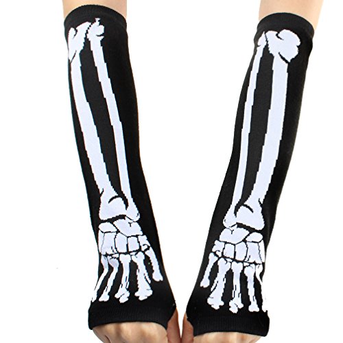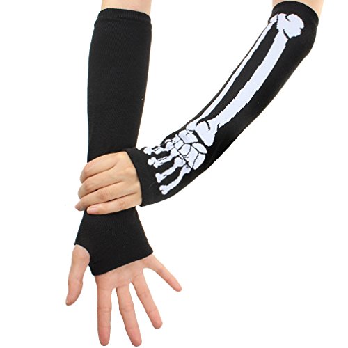 ECOSCO Black Punk Gothic Dark Rock Skeleton Long Arm Warmer Fingerless Gloves