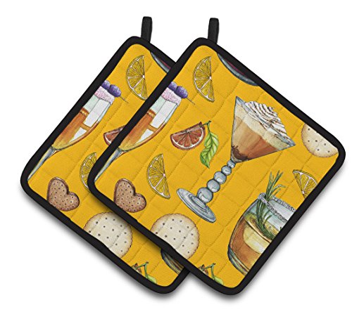 Caroline's Treasures Drinks & Cocktails Gold Pair of Pot Holders, 7.5HX7.5W, Multicolor