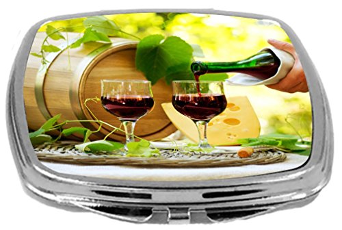 Rikki Knight Compact Mirror, Red Wine and Cheese