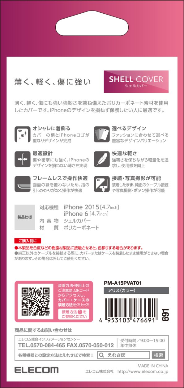 ■ It is a slim shell cover made of polycarbonate that firmly protects iPhone 6s / iPhone 6 beautifully from scratches and dirt.