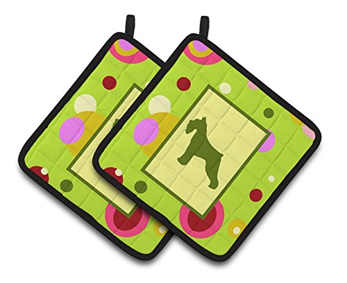 Caroline's Treasures Lime green Dots Schnauzer Pair of Pot Holders CK1054PTHD, 7.5HX7.5W, Multicolor