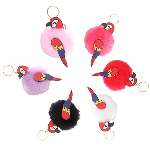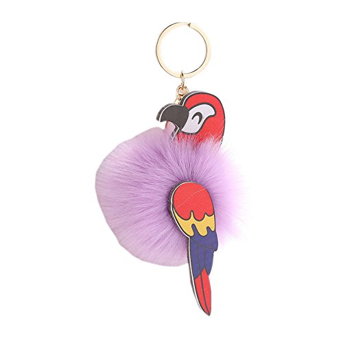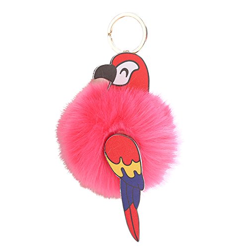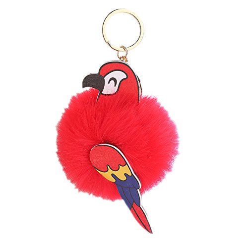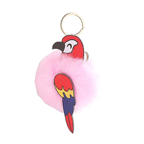 ACTLATI Cute Cartoon Animal Parrot Keyring Handbag Keyfob Decor Fluffy Ball Keychain