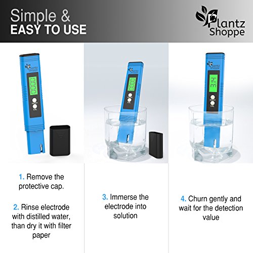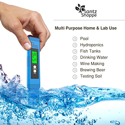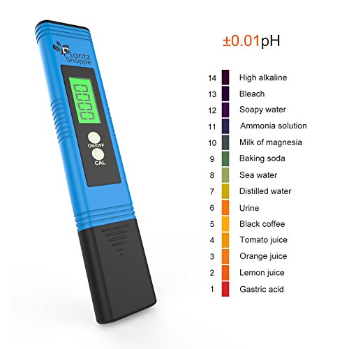 -. Feature : ✅ TEST PH LEVELS FAST & EASILY: Are you tired of lousy ph testing strips and unwanted chemicals that you don't always know how accurate they are. Our Plantz Shoppe Pen Style Pocket pH Meter is perfect and ideal for household and laboratory use, including for your Hydroponic Garden, wine, Water, Food, Aquarium, Pool, Hydroponics, Indoor Growing and More / ✅ NO SCREWDRIVER FOR CALIBRATING NEEDED: Do you want a fast and reliable reading? Our pH meter can save you a lot of hassle and time wasting with its easy to calibrate feature. Each meter includes an auto calibration button and three free pH buffer sets for quick and simple calibration. For optimal results it is best to calibrate in distilled water / ✅ LARGE BACKLIT EASY TO READ DISPLAY: The Plantz Shoppe Ph meter was designed with a bright blue backlit screen which displays extra clear large numbers for easy reading even in the dark or dimly lit areas / ✅ COMPLETE DIGITAL PH METER KIT INCLUDES: 1 - Ph Meter , 1 - Carrying Case, 3 - Ph Buffer Powders (for Calibration) , And 1 - User Manual. TECHNICAL SPECS: *Accuracy:±0.01 pH, * Resolution: 0. 01, pH, Measure Range: 0.00-14.00 pH / ✅ 100% MONEY BACK GUARANTEE: Customer Satisfaction Is Our Top Priority. If You're Not Satisfied For Any Reason With Our Pocket Style PH Meter Pen, We'll Refund Your Money. No Questions Asked!