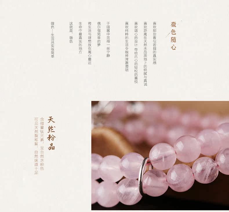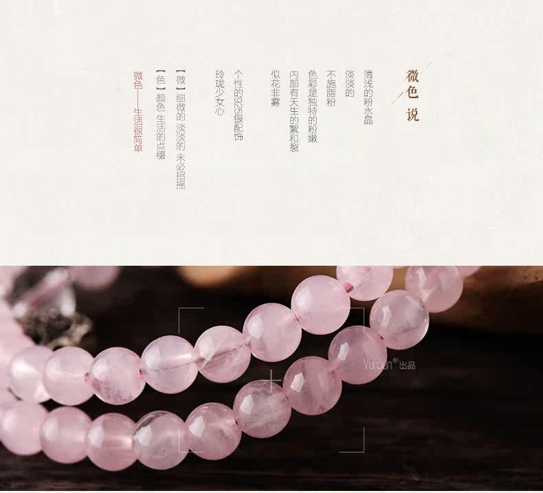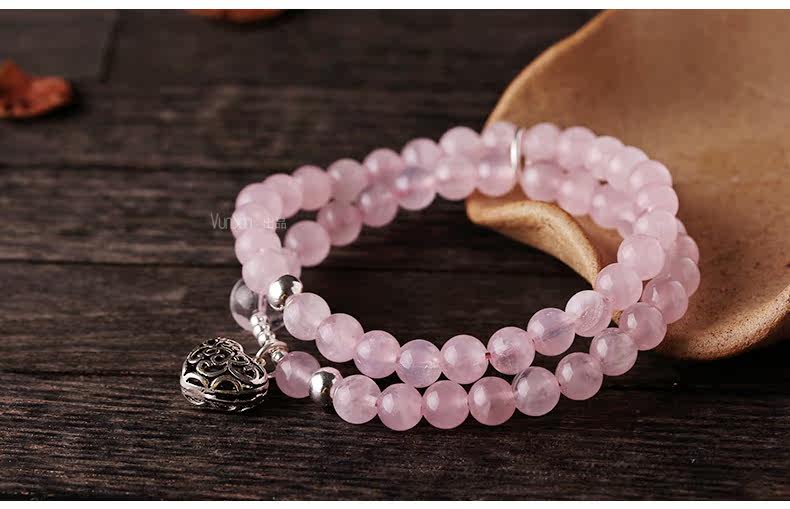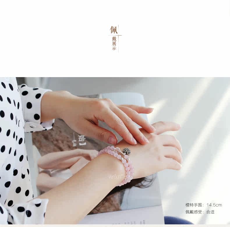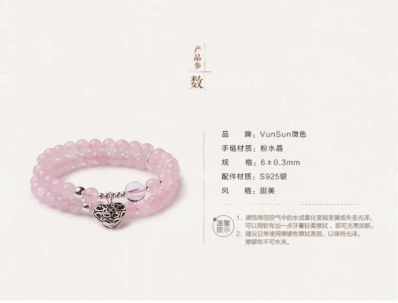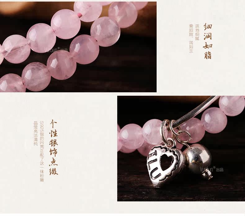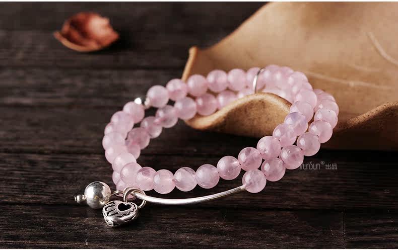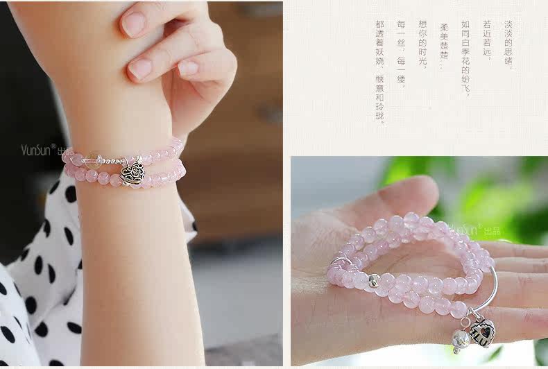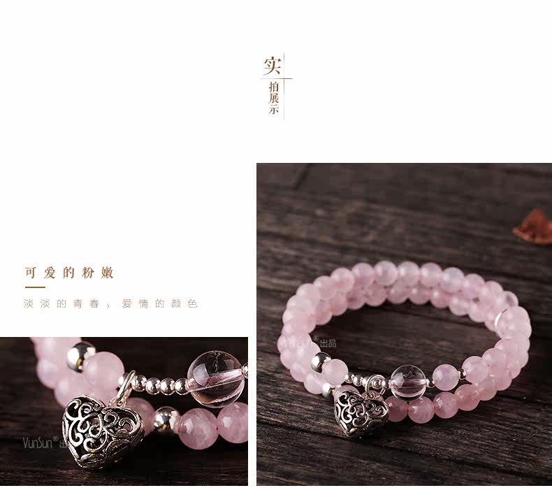 天然粉水晶手链女款单圈粉晶手串925银饰心形韩版饰品礼物