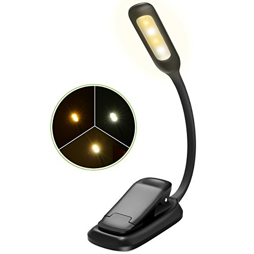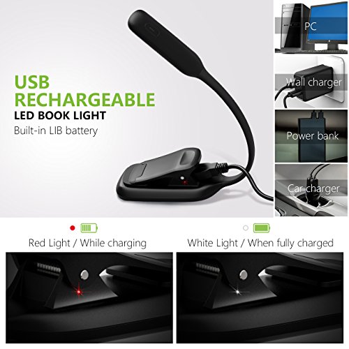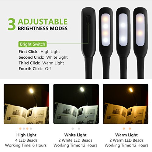 Pictek Book Light,3 Modes [Warm/White] 4 LED & Flexible Clip-on Rechargeable Reading Light, Bright and Small Size Reading Lamp with USB Cable