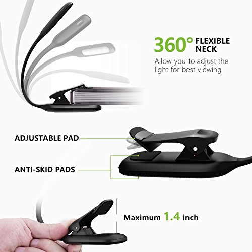 ☼.Portable, Light up for you anywhere! Weights 2.54oz, there is no sense of burden when using. Flexible neck can be folded to small size. You can take it along easily. The clip can be opened up to 1.4in, easily clip.