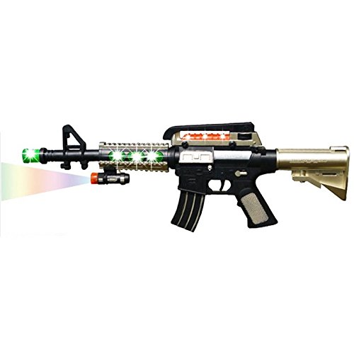 -. Feature : Electronic Toy Gun - With amazing light and sound, powered by 3 AA batteries (not included). / Flashing electronic LED lights - Pull the trigger and watch the r.i.f.l.e light up with flashing LED lights throughout · While trigger is held down, the gun will continue to make exciting shooting sounds / Durably Constructed Material - Your child will spend countless hours playing with this child safe product. Made of high quality plastic materials. / Stimulating Imagination - Pretend play develops a child's motor, imaginative and understanding skills; additionally, it improves the child's self-esteem. / Recommended for ages 3 & up. Products arrive in attractive packaging making it an ideal birthday or Christmas gift.