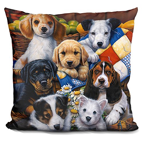 LiLiPi Country Bumpkin Puppies Decorative Accent Throw Pillow