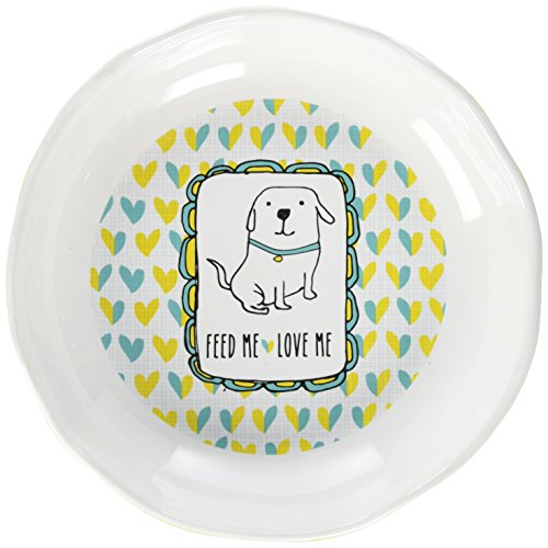 Pavilion Gift Company It's Cats & Dogs-"Feed Me Love Me" Shallow 2" Tall Ceramic Dog Food and Water Dish, Yellow