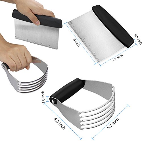 ★Specification * Material: Stainless Steel Plastic (TPR ) * Dough Blender Size: 4.5*3.7*1.6 inch * Dough Cutter Size: 4.7*6.5*0.6 inch * Color: Black * Package Dimensions : 6.5*5.23*2.99 inch * Item Weight : 0.718 lb