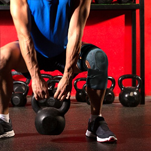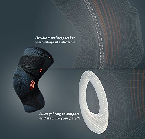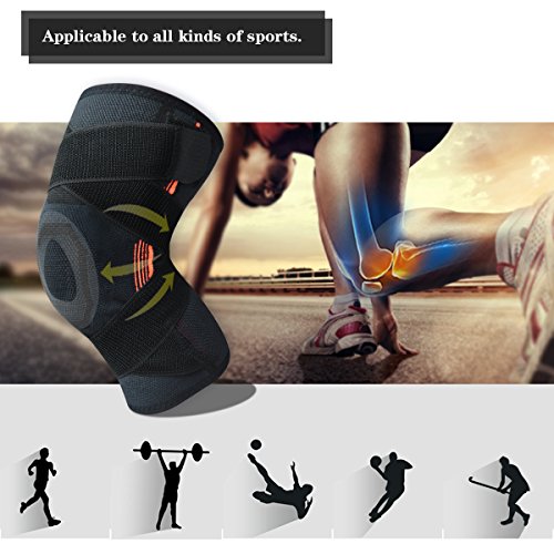 -. Feature : KNEE PROTECTION: Effectively improves blood circulation & muscle exercise,helps recovery from knee injuries & pain,protects your knees from injueries& Arthritis in intense exercises, help to relieves pressure and reduces stress on the knee-joint during intense exercise and heavy usage / STABILIZER SILICONE RING: Ensure the knee cap remains in its proper position, and distributes stress across the ACL, PCL, LCL, and MCL ligaments, lowering the risk of re-injury by guiding the knee cap into proper motion / ANTI-SLIP DESIGN:No rolling down or sliding down! The flexible metal sP.R.Ing bar in the two sides and adjustable pressure straps provide your knee seamless fits,ensures the knee cap remains in proper position without slipping down / PREMIUM MATERIAL:Lightweight,breathable and Comfortable knit, this material not only wicks away perspiration but also prevent friction injury, maintains joint stability in any activity that brings a full range of motion / MULTI-USE:Perfect for a range of activities like Walking, Running, Weightlifting, hiking, fitness,basketball etc... It fits anyone suffering from an injury or knee pain, ideal for meniscus tear, arthritis, tendonitis, osteoarthritis