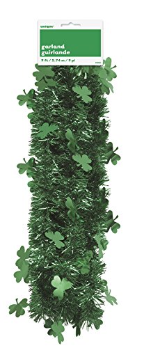 Studio : Unique Publisher : Unique Binding : Kitchen Product Description Deck out your party space for sparkling fun with our Tinsel St. Patrick's Day Shamrock Garland. At 9 feet long, this Shamrock Tinsel Garland is ideal for decorating the walls, railings and doorways at your Saint Patrick's Day party. With its fun, shiny shamrocks, you can even drape it around your food table to make your party spread look more festive. For a festive celebration no one will soon forget, coordinate with other Saint Patrick's Day party decorations and party supplies. St. Patrick' Day Garland measures 9ft. 0