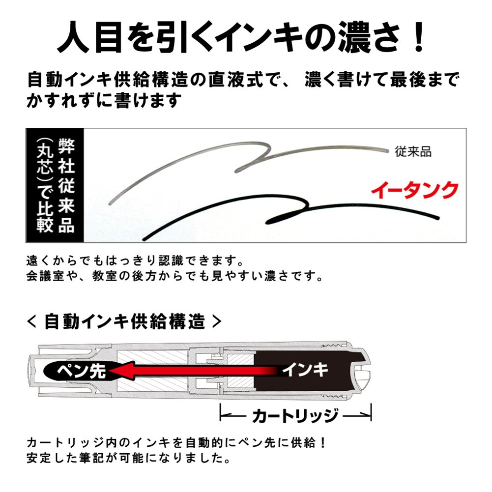 "Very attractive ink density!" It is a direct liquid type of automatic ink supply structure, it can be darkly written and written without blurring to the end.