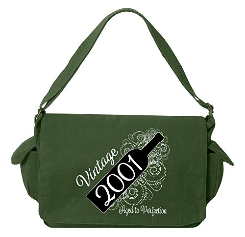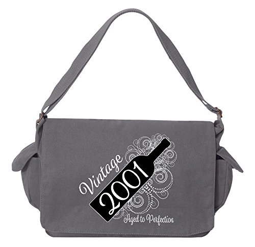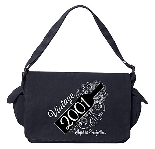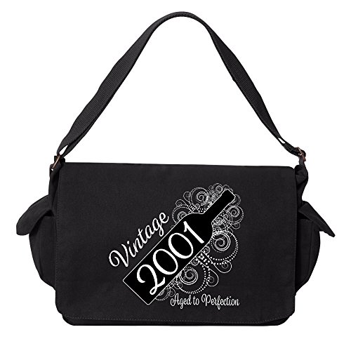 Studio : Tenacitee Publisher : Tenacitee Binding : Personal Computers Product Description Born in 2001 - Aged Like a Fine Wine Brushed Canvas Messenger Bag by Tenacitee. Express yourself! No boring bags here, this messenger bag is custom printed in our Oklahoma shop just for you. Made of 12oz 100% soft brushed cotton canvas this bag is perfect for telling the world what you think while you're out and about town. We use the latest Direct to Garment printing technology for a vibrant and soft print with less wasted ink. The bag is machine washable, has several inside zippered pockets, an interior key leash hook, and a 2" wide adjustable shoulder strap. The bag measures approximately 16"x11.5"x4.75". 0