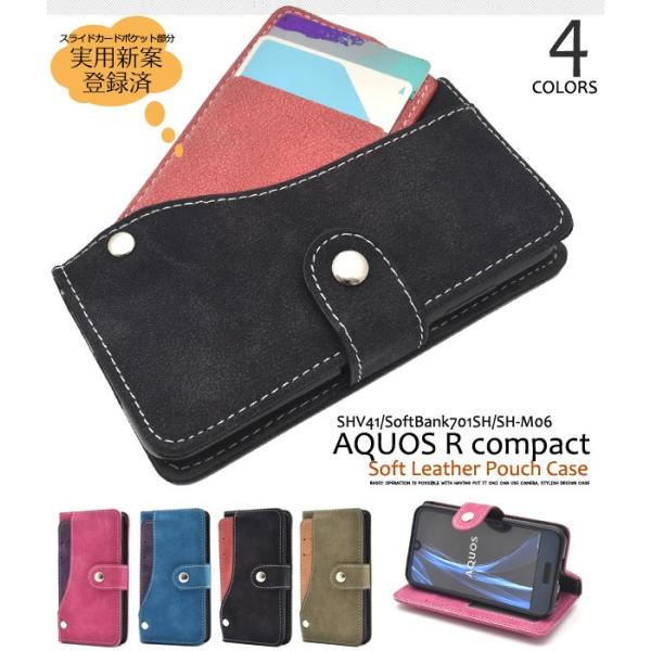 | 対応機種 AQUOS R compact | AQUOS R compact SHV41 SoftBank 701SH SH-M06 背面に2枚収納スライド式カード入れ、内側に2枚収納カードポケットとサイドポケット搭載 サイズ(約)縦135×横73×厚み20mm カラー ブルー ブラック グリーン ピンク |